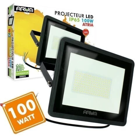 Ce projecteur LED extérieur modèle ATRIA 100W compact ultra léger est idéal pour éclairer votre extérieur, garage, entrée de maison ou lieux de passage (IP66)