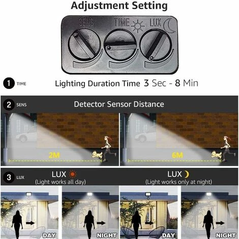 【Fonction de détection】Détecteur de mouvement de lumière d’inondation extérieure à LED Fonction de détection puissante, allumage instantané, pratique et économie d’énergie. Et la distance de détection, la direction de l’angle, l’heure et l’éclairage peuvent être réglés et ajustés manuellement.