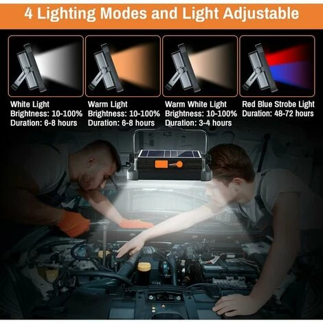 【4 MODES D’ÉCLAIRAGE ET LUMIÈRE RÉGLABLE】: Le projecteur LED rechargeable est équipé de 336 LED, ainsi que sa puissance de 100W, en font un outil très utile dans les endroits sombres, à l’intérieur comme à l’extérieur, idéal pour le camping ou les travaux