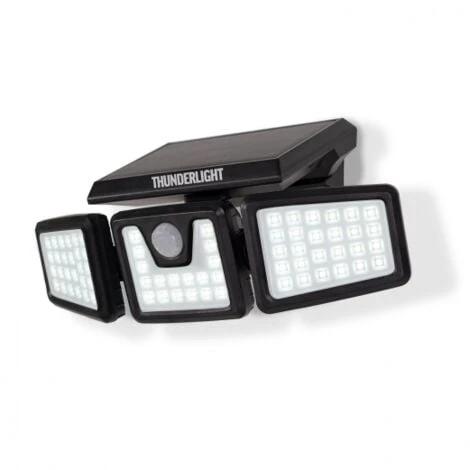 Eclairer de manière efficace votre extérieur est désormais possible grâce à ce projecteur solaire 3 têtes 70 led avec son capteur solaire et son détecteur de présence 120 degrés.Un abri de jardin, une dépendance située dans le fond du jardin, au-dessus de votre porte de garage : cette lampe d’extérieur en ABS + polycarbonate est équipée de 3 têtes pour 3 fois plus de possibilités !Pratique sans fil, il s’installe où vous le souhaitez avec sa large base et ses 3 têtes pivotantes de haut en bas et de façon latérale. Vous éclairez sur une longue portée où vous le souhaitez.Ce projecteur intelligent s’adapte à tous vos besoins.Son détecteur de présence à 120° s’allume au moindre mouvement sur une portée allant jusqu’à 8-10 m avec une durée d’éclairage de 30 secondes.Ecologiques, ses 70 LED blanches sont alimentées par un panneau solaire (Dim. 15 x 10.5 cm) collectant l’énergie pendant toute la journée.Il s’allume automatiquement dès la tombée de la nuit au moindre passage.Dimensions et composition du projecteur solaire 3 têtes Dimensions du projecteur : 28 x 11 x 13 cmMatériaux : ABS + PC coloris noirFlux lumineux : environ 650 lumensIndice de protection IP44 certifié pour résister aux intempériesBatterie solaire : 7 W avec batterie Li-ion 3.7V 2200mahSystème de fixation murale inclusConforme aux normes CE / RoHS en vigueurDécouvrez tous nos projecteurs et appliques sur notre boutique en ligne !