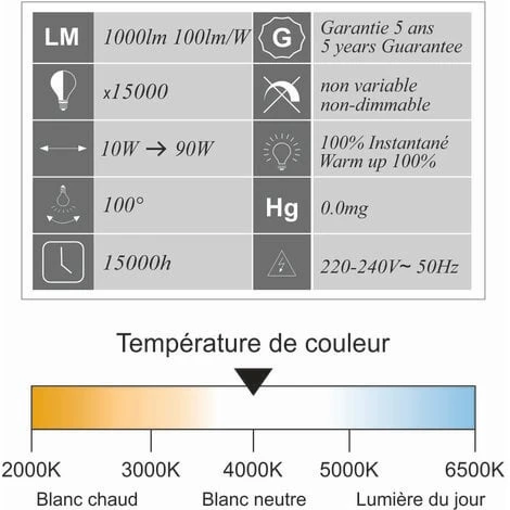 Ce projecteur à LED intégrée de 10W remplacera vos anciens projecteurs à halogène équivalent à 90W.