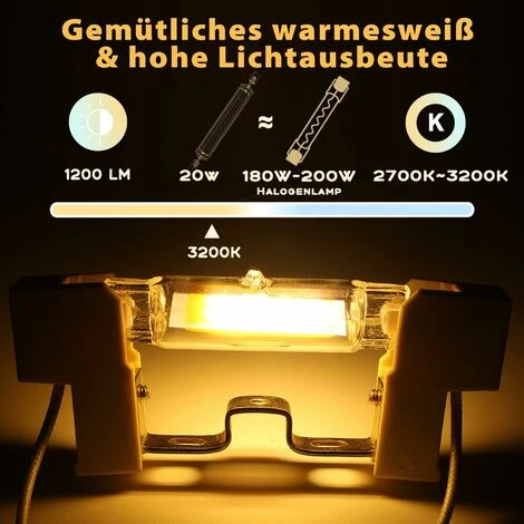 💡【20W R7S LED 118MM】Ampoule LED Hightlight Dimmable R7S 118mm, LED COB double extrémité 1200LM, angle diffusion lumière blanc chaud 2700-3200K 360 degrés, douille de lampe céramique à faible teneur calories, structure connexion antidéflagrante, puce LED COB haute qualité