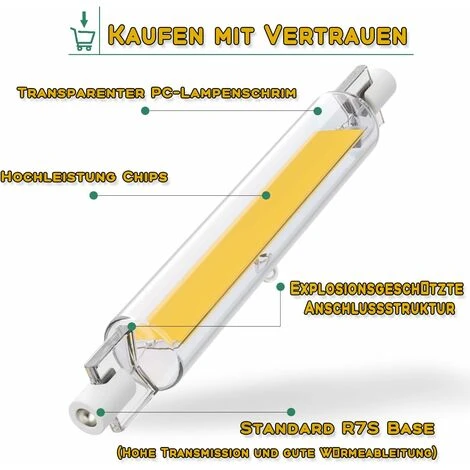 💡【Respectueux l’environnement】R7S LED 118mm certifié par CE et RoHS. Pas plomb ou mercure, rayonnement UV ou IR. R7S 118MM LED fournit une source lumière stable, lumière naturelle douce sans éblouissement, soulageant considérablement fatigue visuelle