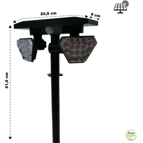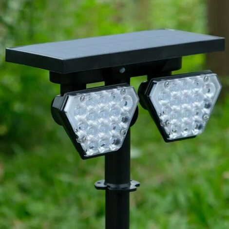 - Ne laissez plus de zones d’ombre dans votre jardin : optez pour un spot led solaire extérieur avec double tête pivotante. Vous pouvez le planter au sol ou bien le fixer contre un mur : il s’adapte à tous vos besoins d’éclairage.