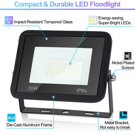 ☔【Étanche IP66】 : Fabriqué en aluminium moulé sous pression et verre trempé, avec indice de protection IP66, ce projecteur convient à l’éclairage intérieur et extérieur (pluie, neige, froid ou chaleur). protège le circuit interne.