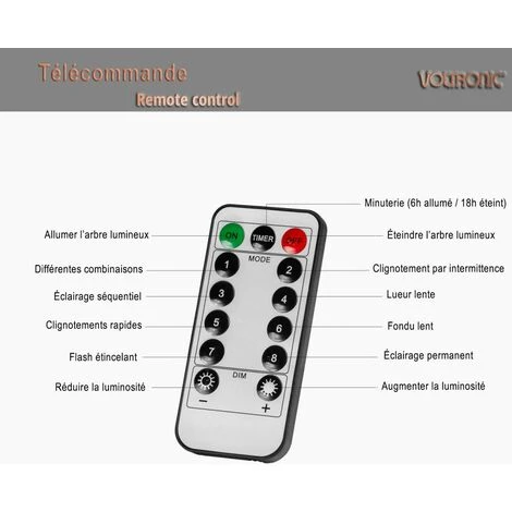 L’arbre lumineux à LED Voltronic est une décoration lumineuse qui égaye une pièce, le jardin, le balcon, la terrasse, le salon etc&hellip Il est doté de 96 LEDs et d’une hauteur de 120 cm. Cet arbre à LED est parfait pour la décoration de Noël ou toute l’année. Il dispose de 8 programmes d’éclairage différents qui se contrôlent grâce à la télécommande incluse. Il transforme n’importe quel endroit en une ambiance lumineuse. L’arbre décoratif dispose aussi de 4 trous pour une fixation dans le sol. Son étanchéité IP44 permet une utilisation en intérieur comme en extérieur.