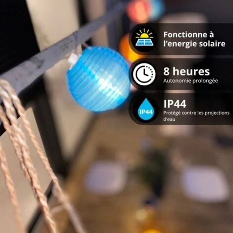 - Guirlande LED solaire avec 8 boules Multicolores, d’une longueur de 5m